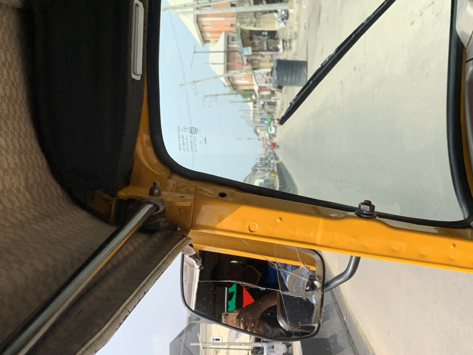 - "The image depicts an exterior view of a street scene in Ibasa, Nigeria, captured from the interior of a yellow three-wheeled vehicle, likely a commercial tricycle" by FM-8xdlM2, licensed under CC BY 4.0