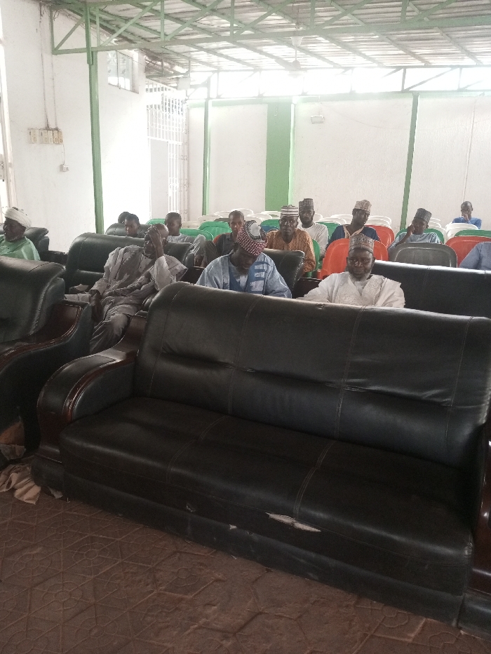 group of men seated in an indoor waiting area in Birnin Kebbi, Nigeria