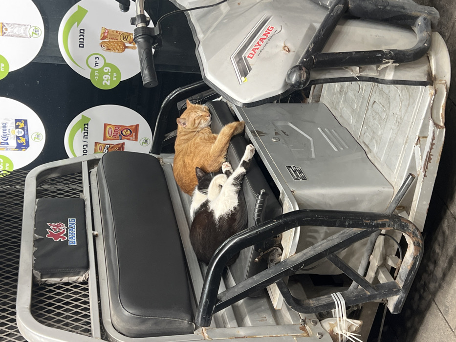 - "Two cats, one orange and one black and white, are resting on the seat of a Dayang scooter" by FM-rClPH2, licensed under CC BY 4.0