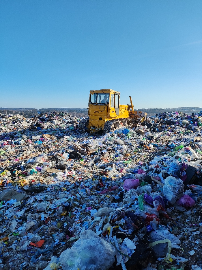 - "The image depicts a vast outdoor landfill site in Svetlyi, Russia, under a clear, bright blue sky" by FM-1C5Nu2, licensed under CC BY 4.0