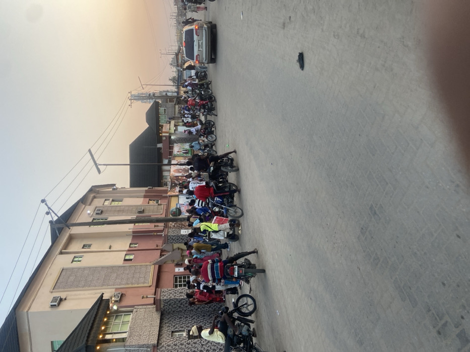 - "A street lined with buildings on the left is congested with motorcycles and people" by FM-Ryd1w1, licensed under CC BY 4.0