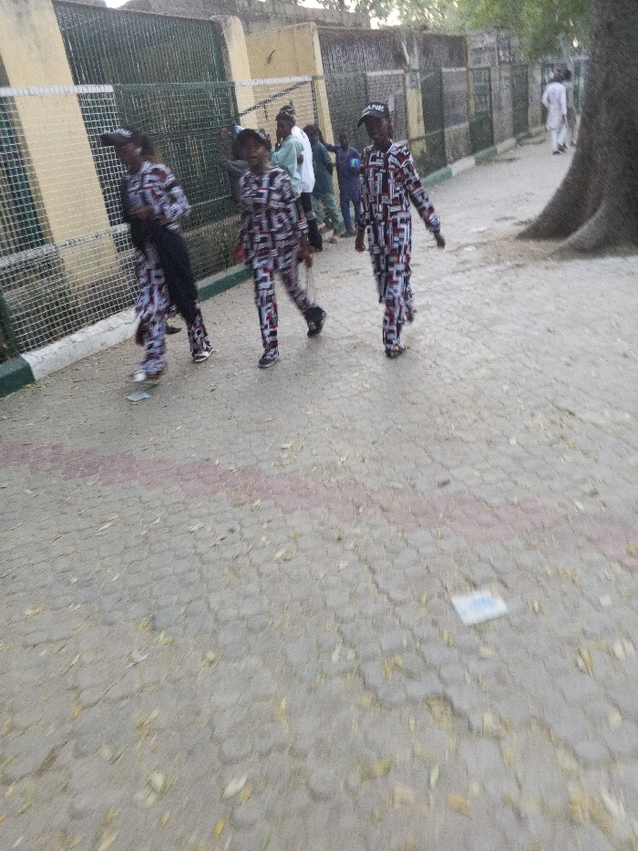 - "Three individuals wearing matching patterned outfits walk along a paved path" by FM-q4R863, licensed under CC BY 4.0