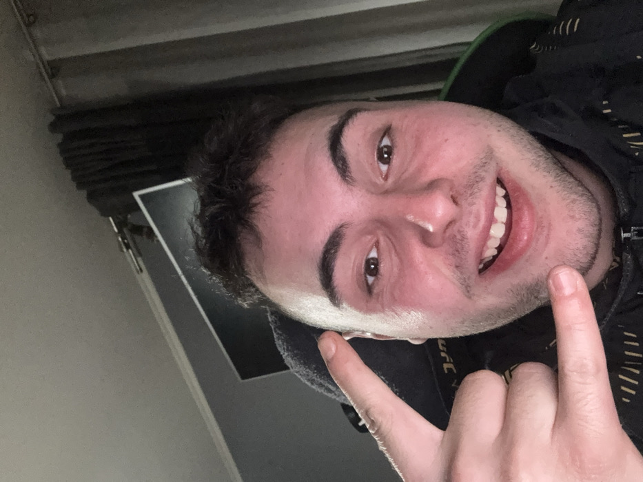An individual, identified as male, is depicted in a close-up, selfie-style photograph taken indoors in Sofia, Bulgaria