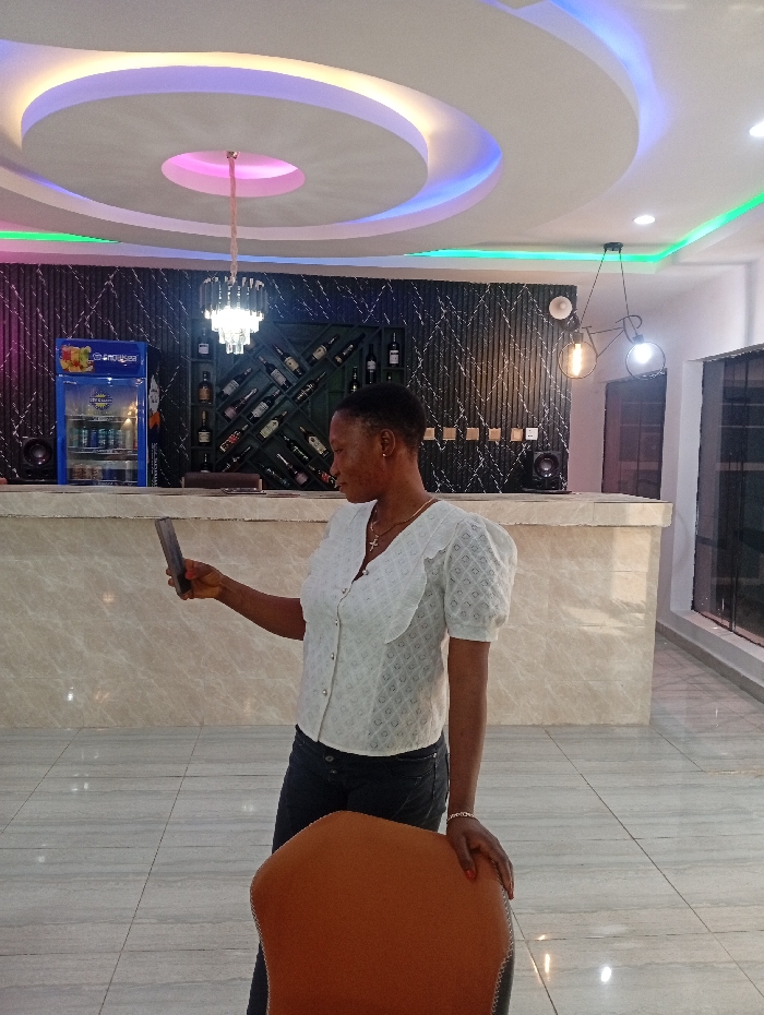 The image depicts an indoor scene within a modern establishment located in Lokoja, Nigeria