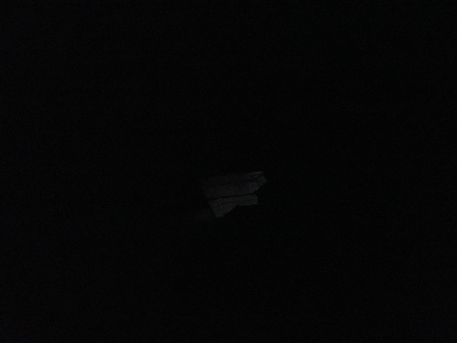 The image depicts an extremely dark, underexposed scene, predominantly black