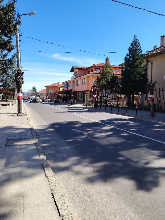 - "The scene depicts a street view in Rozino, Bulgaria, under a clear, bright blue sky with a few wispy clouds" by FM-Gx6VP2, licensed under CC BY 4.0