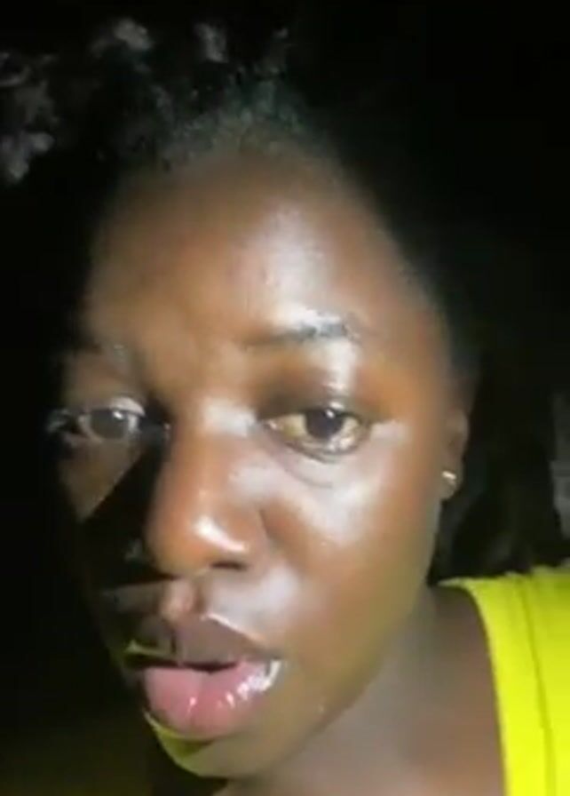 A close-up video shows a woman with dark skin and dark hair, wearing a bright yellow t-shirt