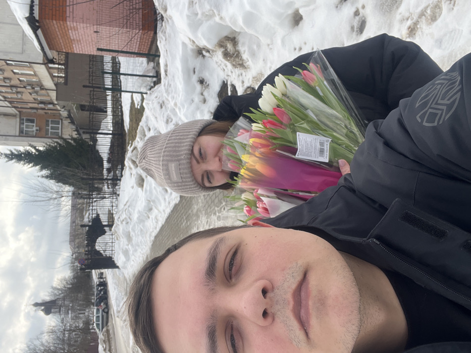 - "A selfie-style photograph depicts two individuals outdoors in Klin, Russia, amidst a winter or early spring landscape with snowmelt" by FM-uf9rE3, licensed under CC BY 4.0