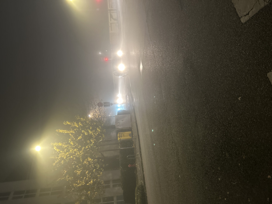 - "The image displays a foggy urban street scene at night in Strasbourg, France" by FM-uYmQi1, licensed under CC BY 4.0