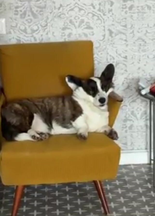 - "A corgi lies on a yellow arm chair" by FM-a2gYy1, licensed under CC BY 4.0