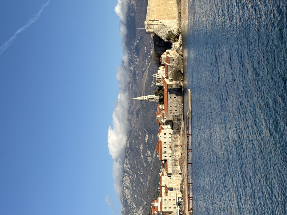 - "The image displays a panoramic view of the Old Town of Budva, Montenegro, situated on a peninsula jutting into the Adriatic Sea, with mountainous terrain in the background" by FM-WaFkX2, licensed under CC BY 4.0