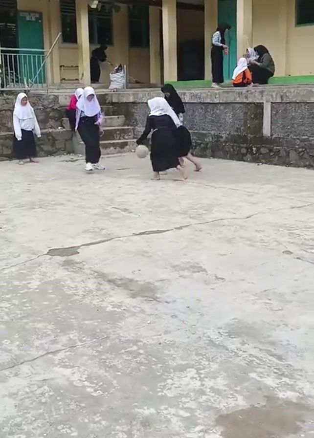 - "Several girls wearing hijabs and school uniforms are playing soccer on a concrete schoolyard" by FM-WRTkH2, licensed under CC BY 4.0