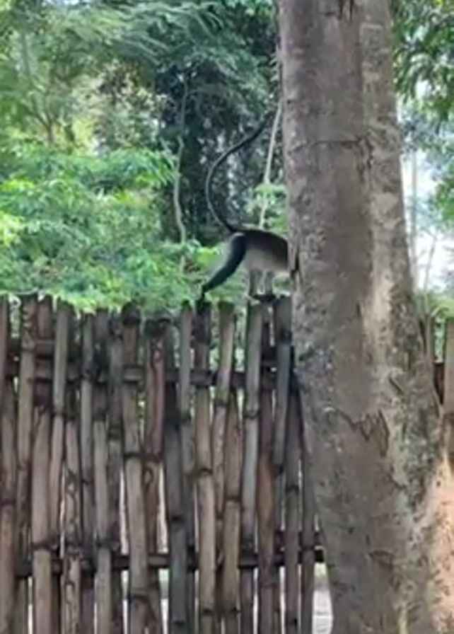 - "A monkey walks along a wooden fence that separates a tree and forest from the rest of the scene" by FM-w5W832, licensed under CC BY 4.0