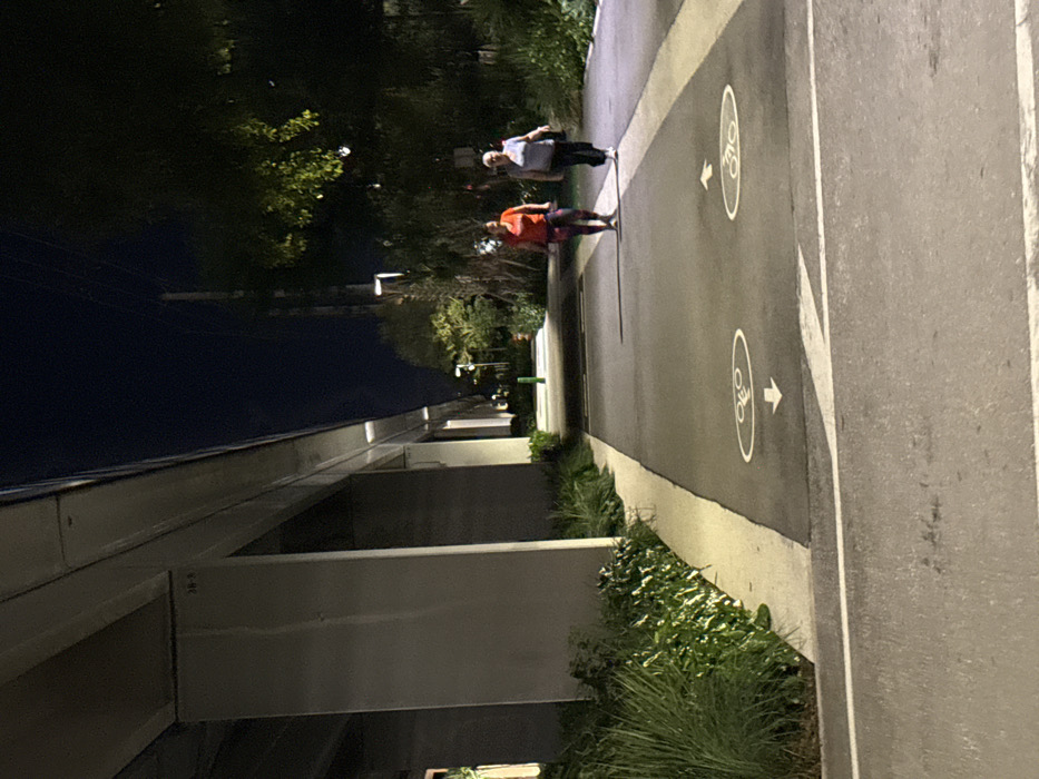 - "A paved path with bicycle lane markings runs along the side of a building at night" by FM-rSR2K3, licensed under CC BY 4.0