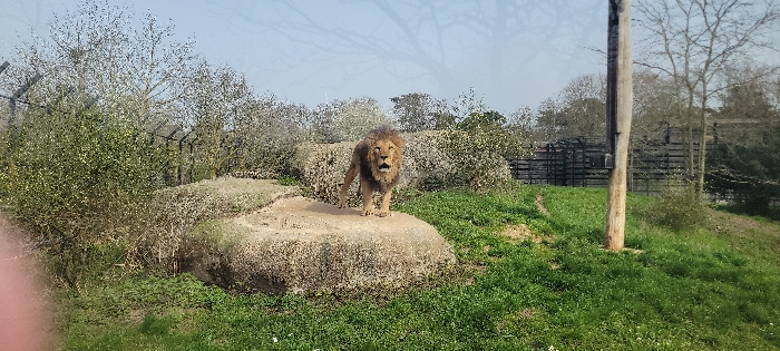 - "A male African lion is depicted standing on a large, light-colored rocky outcrop within an outdoor enclosure at the Parc Zoologique de Paris (Vincennes Zoo) in Paris, France" by FM-u2OAj2, licensed under CC BY 4.0