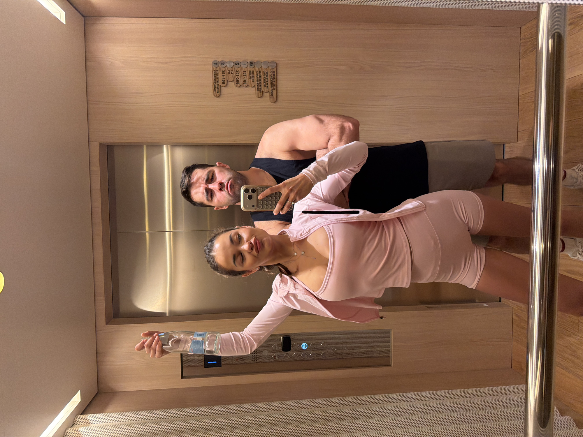 A couple takes a selfie in an elevator in Tbilisi, Georgia