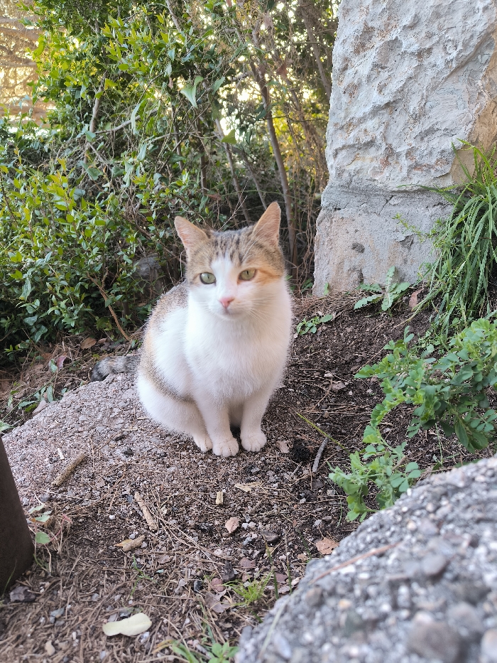 - "A domestic calico cat is seated centrally on a reddish-brown dirt and gravel patch in an outdoor environment in Mirište, Montenegro" by FM-ySTmw1, licensed under CC BY 4.0