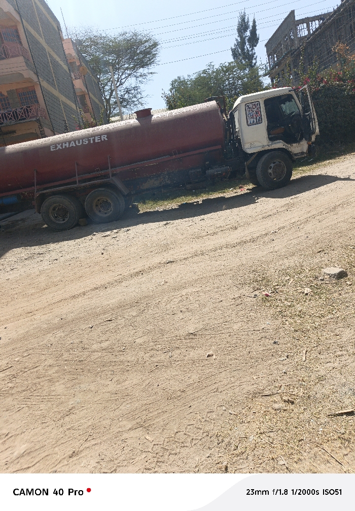- "The image displays a static scene in Oloosirkon/Sholinke ward, Kenya, dominated by a white-cab, red-tank vacuum truck, commonly referred to as an "EXHAUSTER" vehicle, parked on an unpaved dirt road" by FM-Pkpag2, licensed under CC BY 4.0
