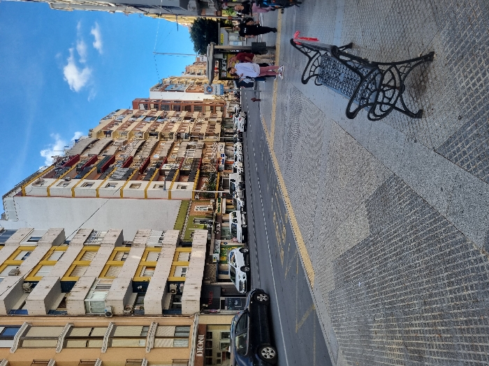 - "The image displays a daytime urban street scene in Huelva, Spain, observed from a low angle on the right sidewalk looking down a thoroughfare" by FM-PLHj72, licensed under CC BY 4.0