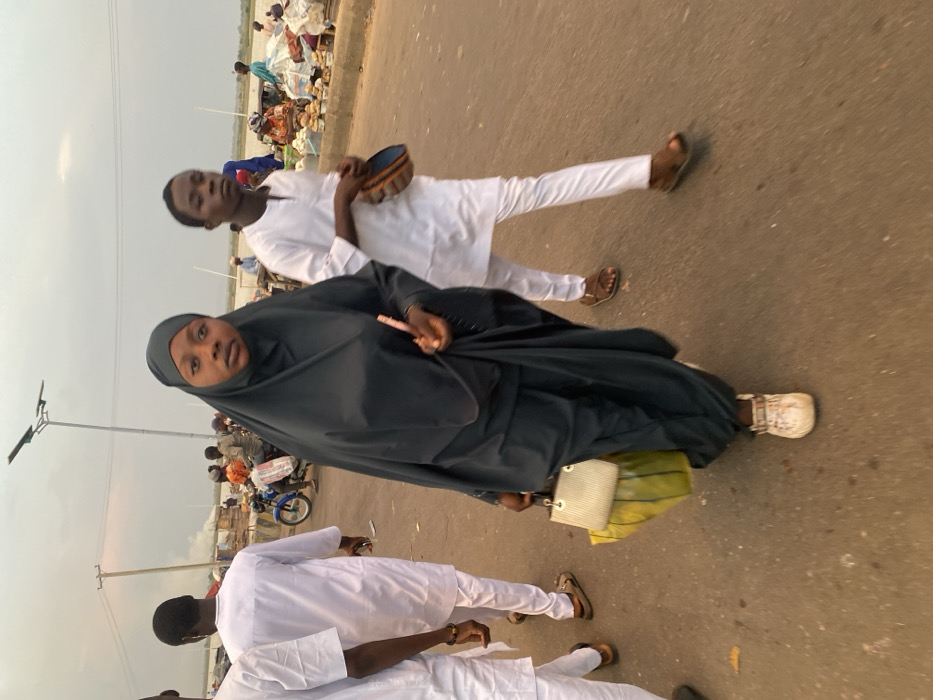 The image depicts an outdoor street scene in Lokoja, Nigeria, observed under diffused lighting, suggesting an overcast sky or late afternoon