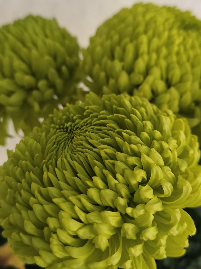 - "Three green chrysanthemum flowers fill the frame" by FM-dWhzM2, licensed under CC BY 4.0