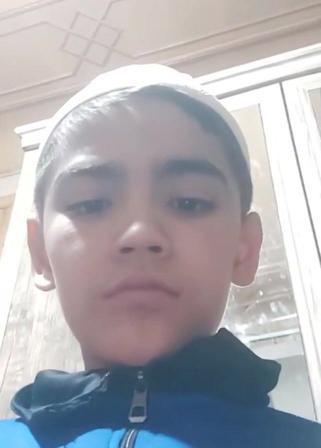 A young person with a white cap is centered in the frame, looking down at the camera