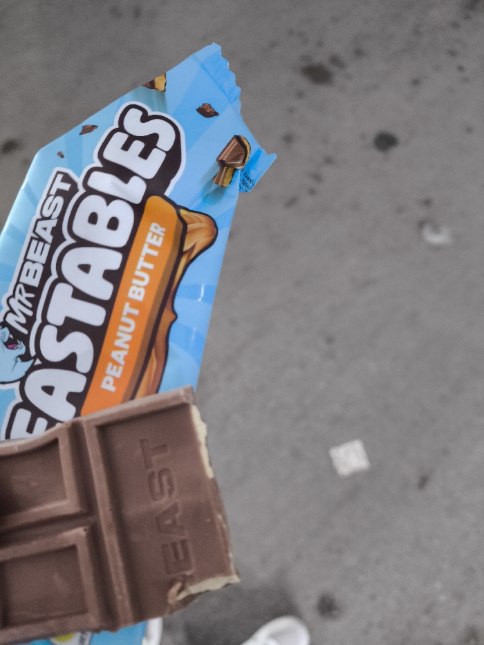 - "The image presents a MrBeast Feastables Peanut Butter chocolate bar and its packaging, held against a gray ground surface" by FM-KeD0c2, licensed under CC BY 4.0