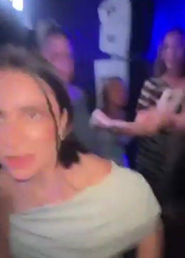 The video, shot from a first-person perspective, shows a woman dancing in a crowded environment, possibly a club or party, under blue lighting