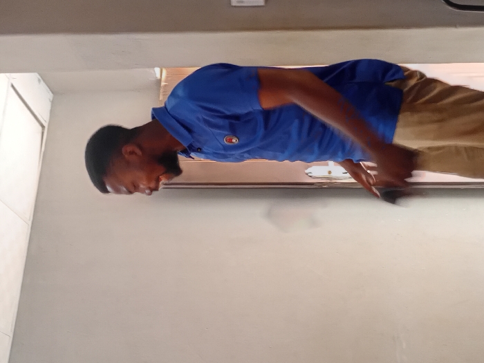 The image displays a single adult male, consistent with an individual of African descent, situated indoors in Minna, Nigeria