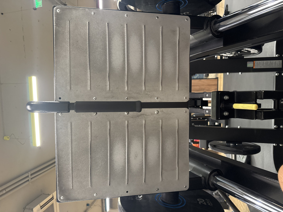 - "This image depicts the interior of a commercial fitness center, specifically focusing on the footplate of a leg press machine, viewed from the perspective of an individual seated on the machine" by FM-uYpIF3, licensed under CC BY 4.0