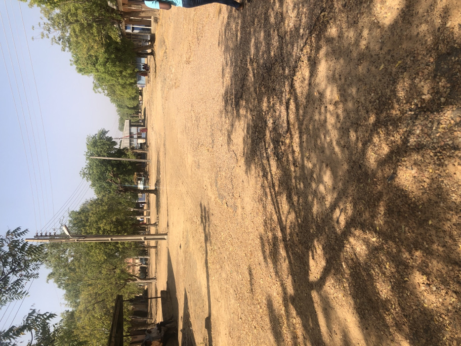 This image captures a wide, unpaved dirt and gravel road in the city of Dutsinma B, Nigeria, under bright daylight