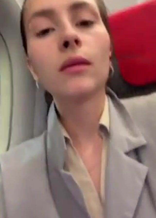 A woman is sitting in a plane seat