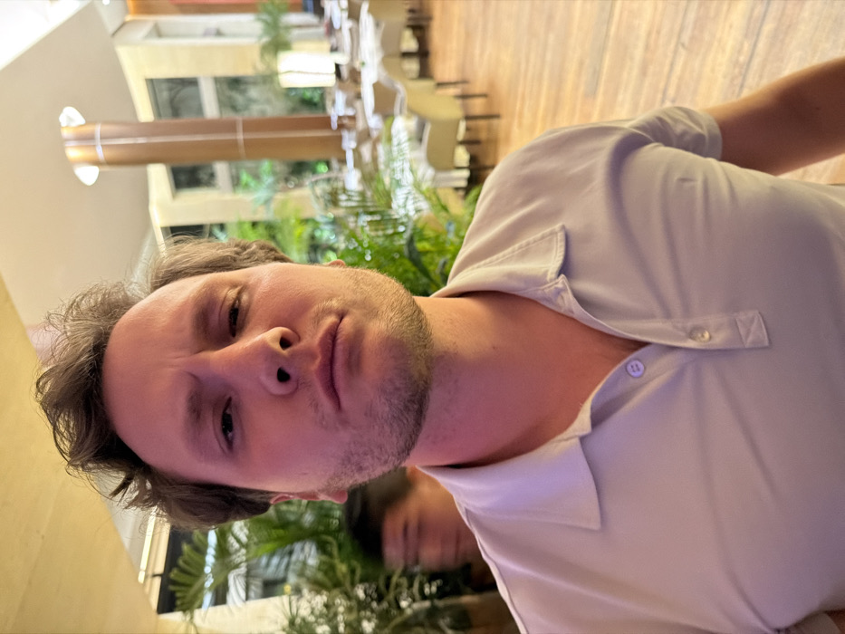 - "A man with light brown hair and beard stubble is the main subject, wearing a light purple polo shirt" by FM-QzkI72, licensed under CC BY 4.0