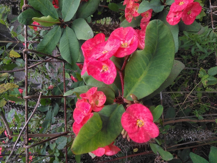 - "The image depicts a close-up view of *Euphorbia milii* (Crown of Thorns) plants located in Ignacio Zaragoza (La Rastrera), Mexico" by FM-U14g83, licensed under CC BY 4.0