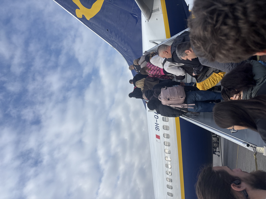 - "The image displays an outdoor scene at Sofia Airport, Bulgaria, where passengers are actively boarding a Ryanair aircraft via mobile airstairs" by FM-AMpuW2, licensed under CC BY 4.0