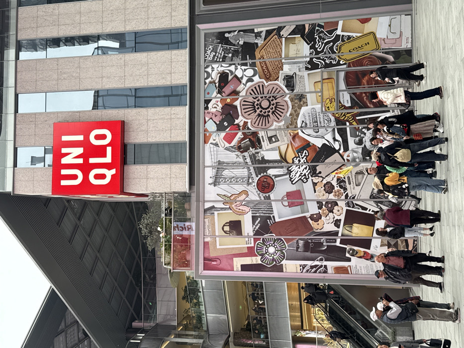 - "An outdoor scene in Liangjiang, China, depicts a modern urban environment featuring a multi-story building prominently displaying a large, red "UNIQLO" sign with white lettering on its beige-tiled facade" by FM-jql2J3, licensed under CC BY 4.0