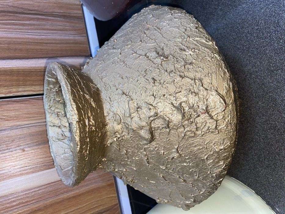 - "The image displays a large, metallic gold-colored, irregularly textured pot" by FM-HU0no2, licensed under CC BY 4.0