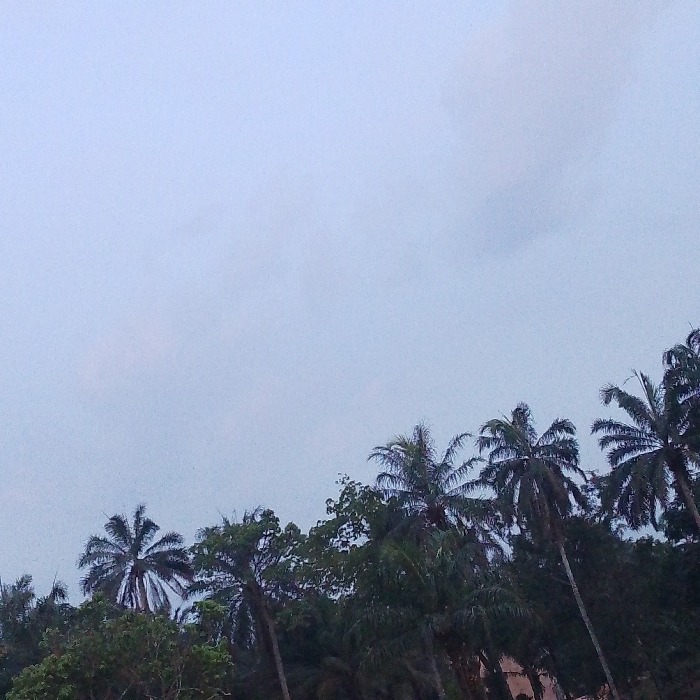 - "Silhouetted palm trees and other verdant foliage occupy the lower portion of the frame against a pale, overcast sky" by FM-9ZXxp1, licensed under CC BY 4.0