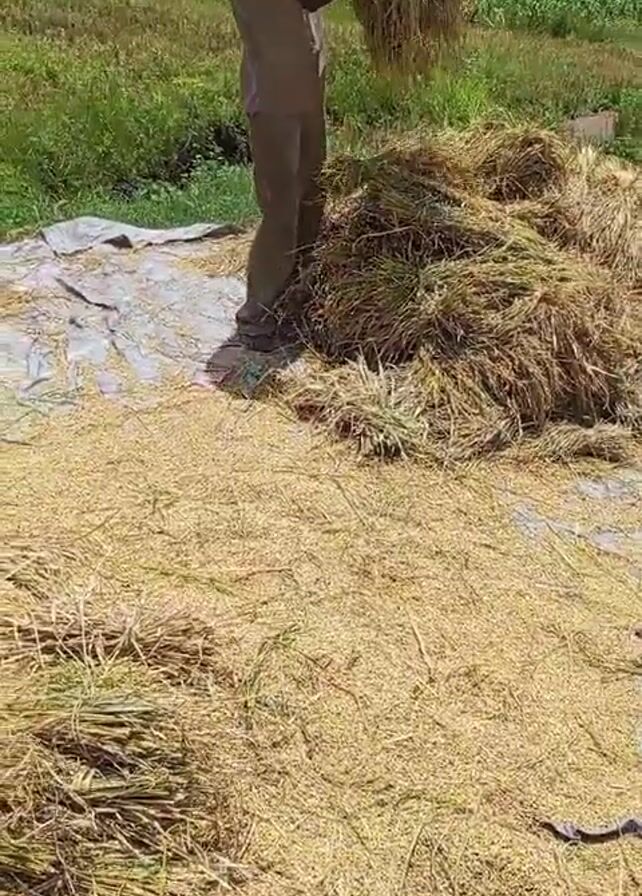 - "Two men are threshing rice on a white tarp laid out on the ground in a field" by FM-f06ZA2, licensed under CC BY 4.0