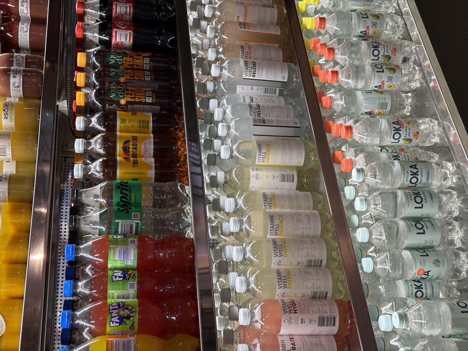 - "The image depicts a refrigerated display unit filled with multiple rows of various bottled beverages, located in Stockholm-Arlanda, Sweden" by FM-qxt1z2, licensed under CC BY 4.0