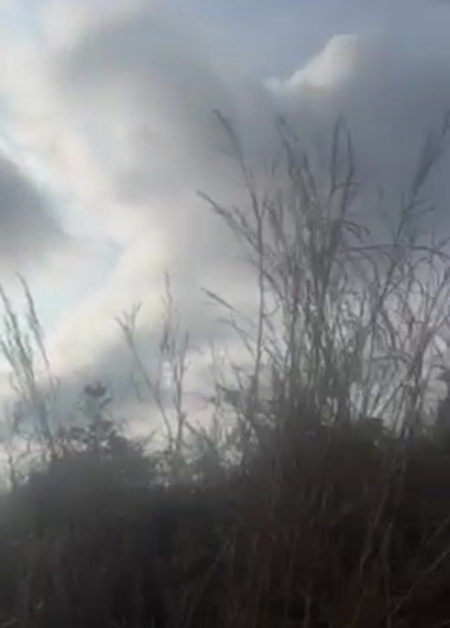 The video pans upward from tall grass and shrubbery to reveal a cloudy sky