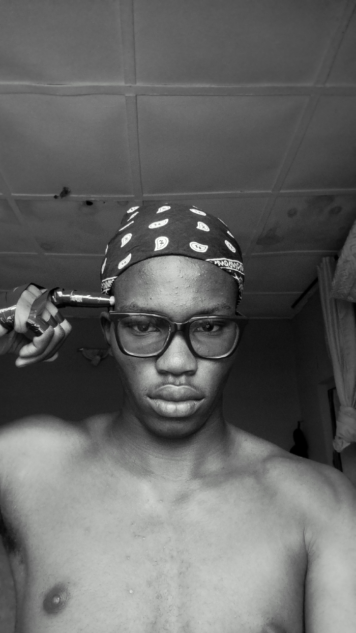 - "A black and white, close-up to mid-shot photograph depicts a male subject indoors in the city of Keffi, Nigeria" by FM-88V7z1, licensed under CC BY 4.0