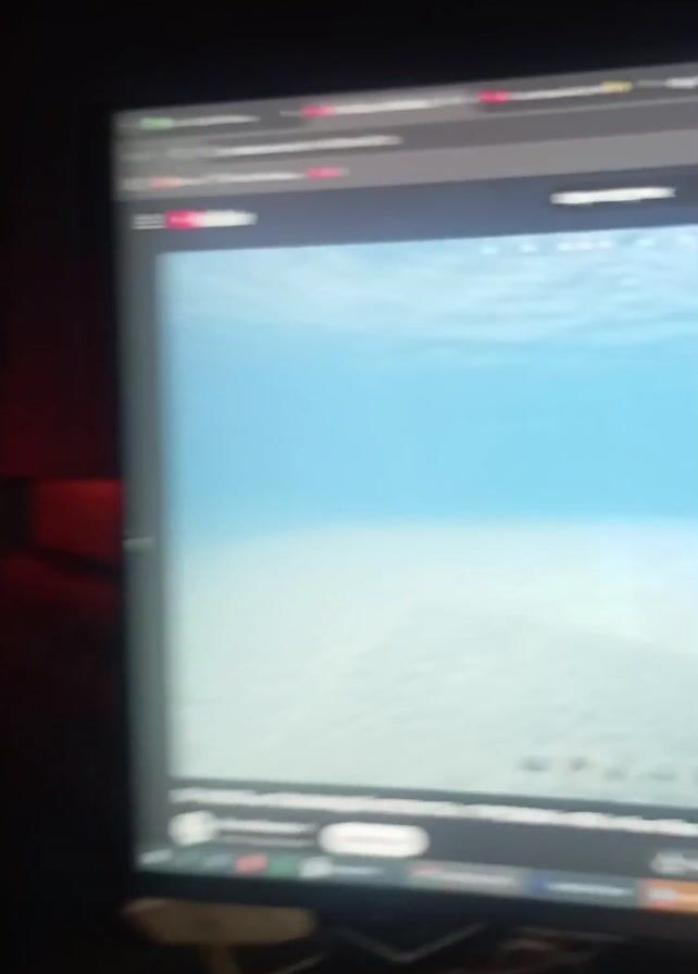 computer screen displaying gameplay of Rust, visible on a desk in a dimly lit room