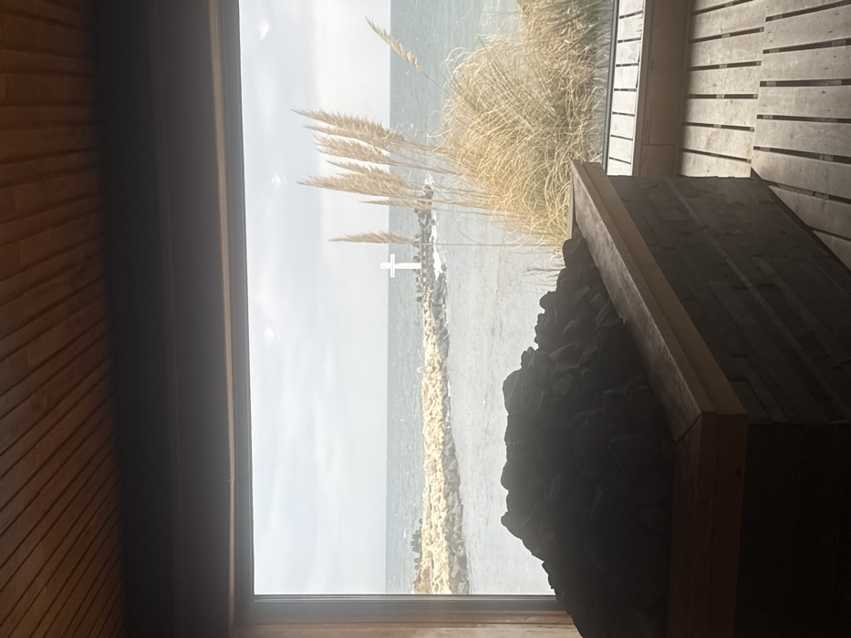 - "The image depicts an interior scene, likely a sauna or spa, viewed through a large horizontal window looking out onto a coastal environment in Varna, Bulgaria" by FM-hcKOz2, licensed under CC BY 4.0