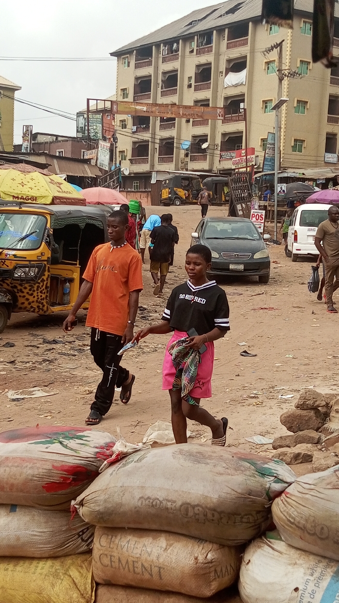 - "The image depicts a bustling unpaved street scene in Onitsha, Nigeria, under an overcast sky" by FM-BAPtL2, licensed under CC BY 4.0