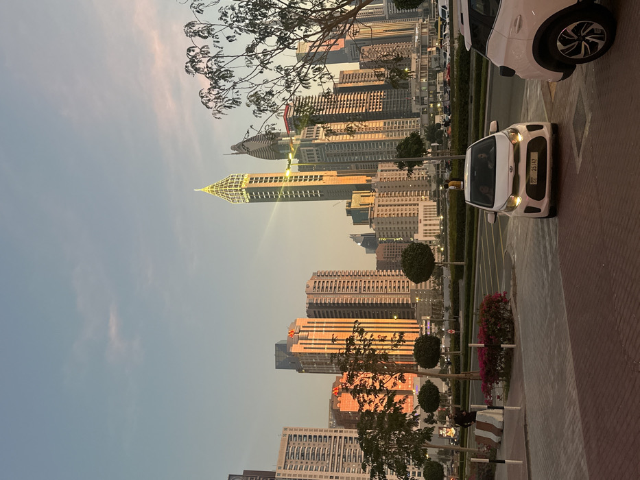 - "The image depicts a panoramic view of a densely developed urban area in Dubai, United Arab Emirates, specifically Barsha Heights (formerly Tecom), at either sunrise or sunset, characterized by warm, golden light reflecting off the buildings" by FM-CwmPI2, licensed under CC BY 4.0