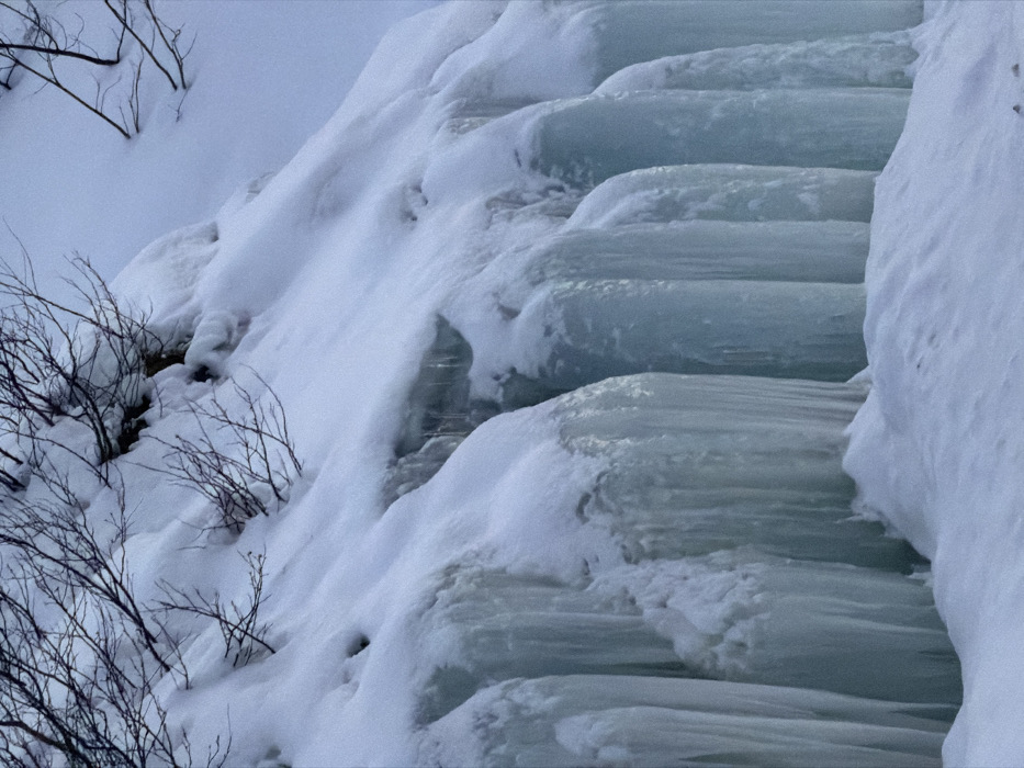 - "The image displays a detailed view of a snow-covered and icy natural formation, likely a rock face or embankment, situated in the city of Unknown, Norway" by FM-AJf9d2, licensed under CC BY 4.0