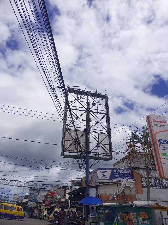 - "An outdoor scene shows an open metal framework billboard structure against a cloudy sky, intersected by numerous overhead wires" by FM-veYH53, licensed under CC BY 4.0
