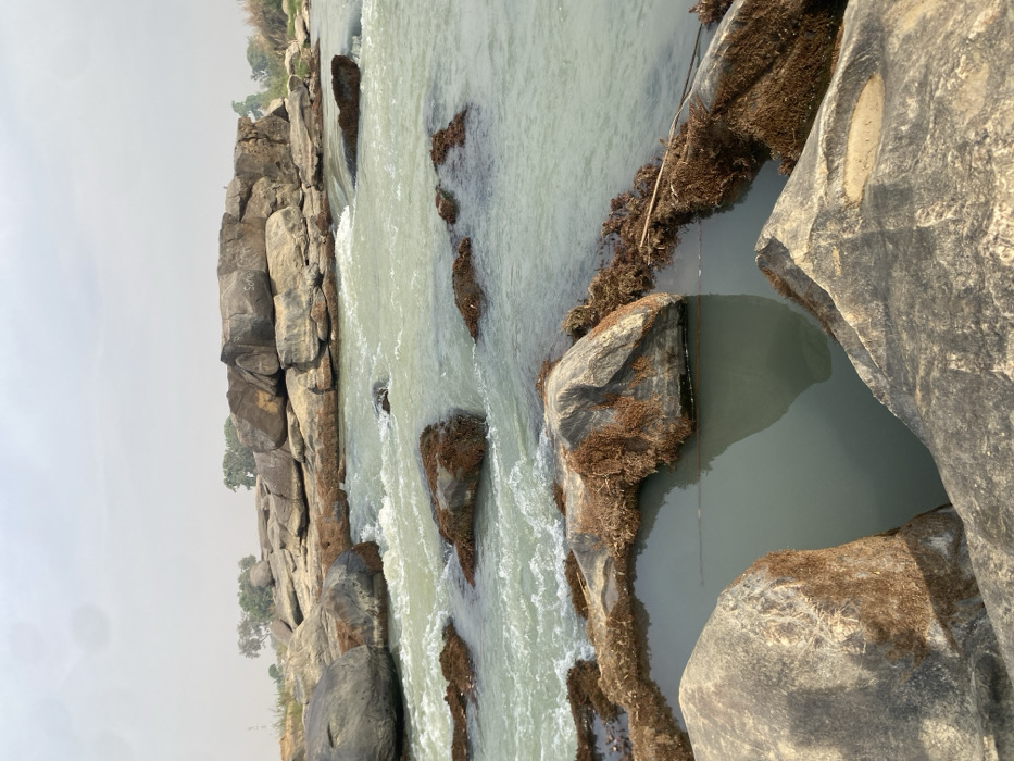 The image depicts a segment of a rocky river, located in Rido, Nigeria