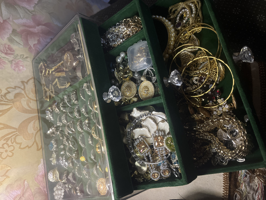 - "An open, green velvet jewelry box is filled with a variety of gold and silver jewelry" by FM-2ubNq1, licensed under CC BY 4.0